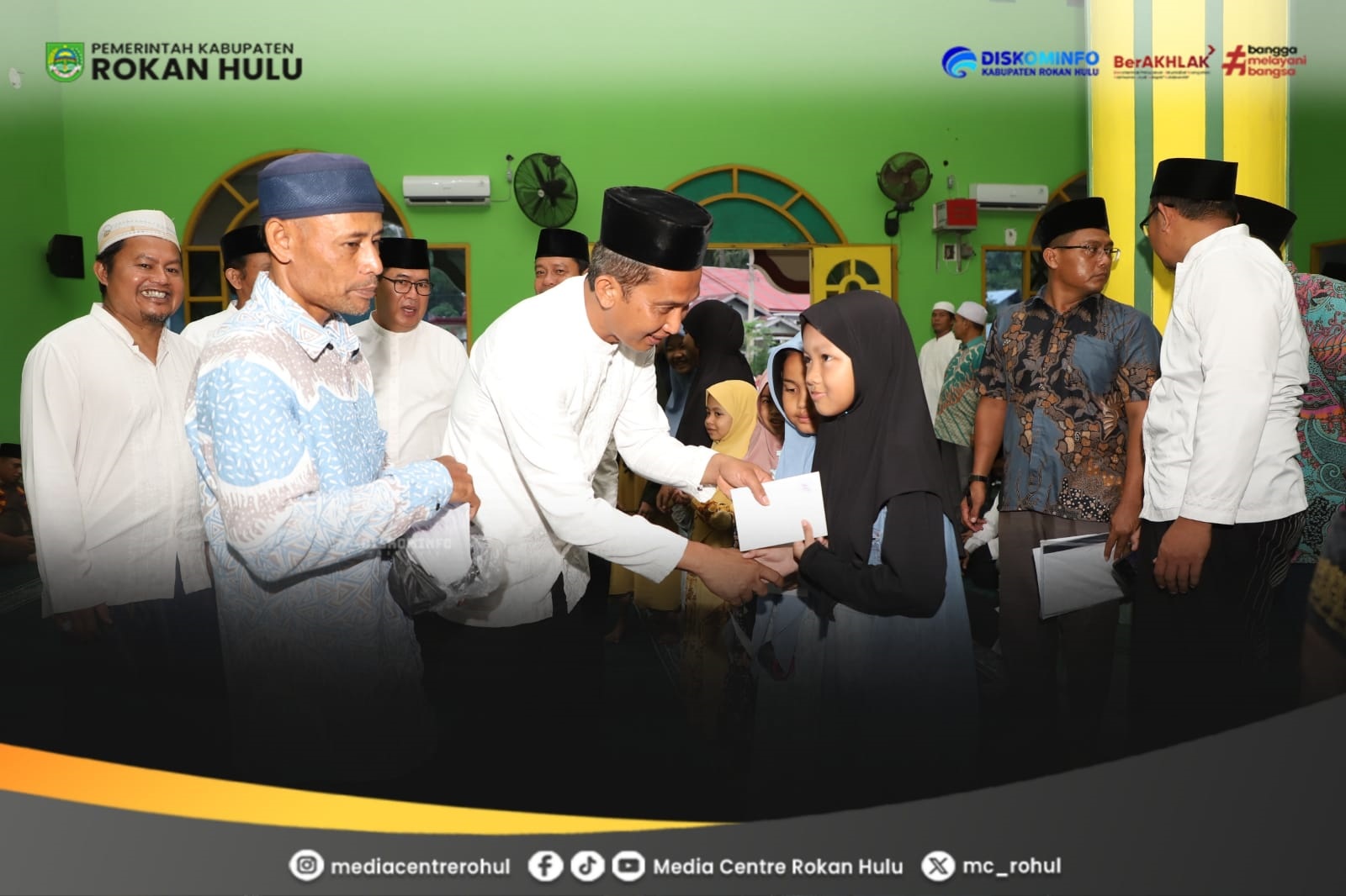 Dalam kegiatan Safari Ramadan di Masjid Mubarok tersebut, Pemkab Rohul turut menyalurkan sejumlah bantuan, antara lain: